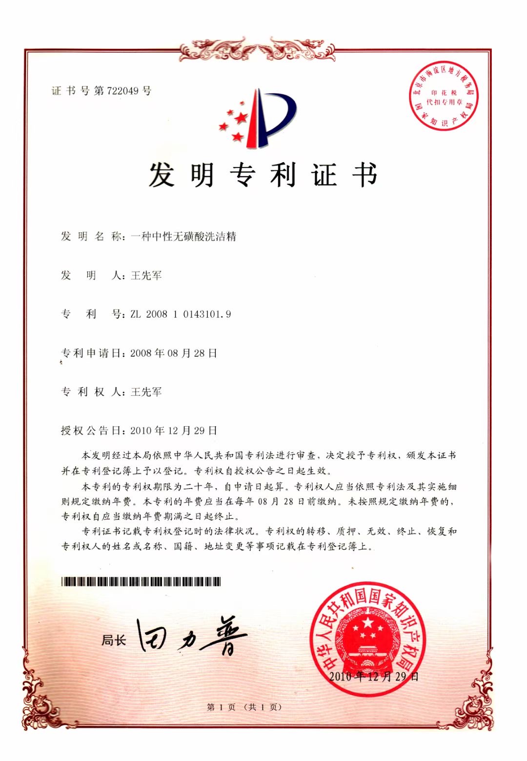 多項(xiàng)專利發(fā)明人王先軍 手機(jī):150-7483-5702 手機(jī):195-7316-0288