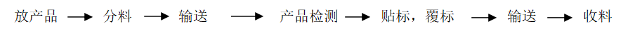 3, 產(chǎn)品在輸送帶的帶動下,自動向右側(cè)貼標機構運行;