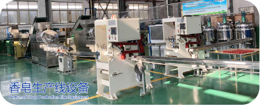 原料攪拌機(jī);三輥研磨機(jī);半成品輸送機(jī);香皂冷凍機(jī);真空出條機(jī);真空泵;切塊機(jī);香皂打印機(jī);成品輸送機(jī) ; 不銹鋼工作臺(tái) |