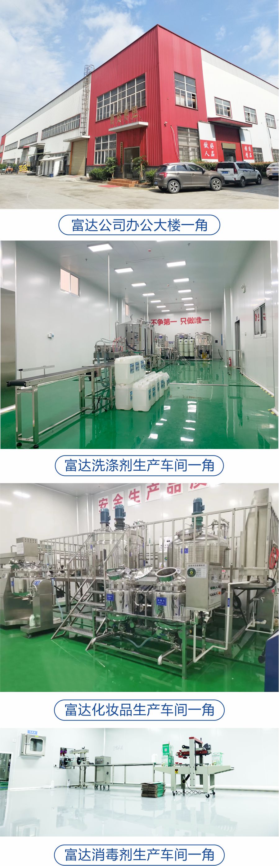 包含以下部分:專用水處理設(shè)備、反應(yīng)釜(含乳化、攪拌功能)、定量灌裝機、旋蓋機、專用印碼器、封箱機等。富達(dá)日化為您詳細(xì)介紹各設(shè)備的功能和具體用途。