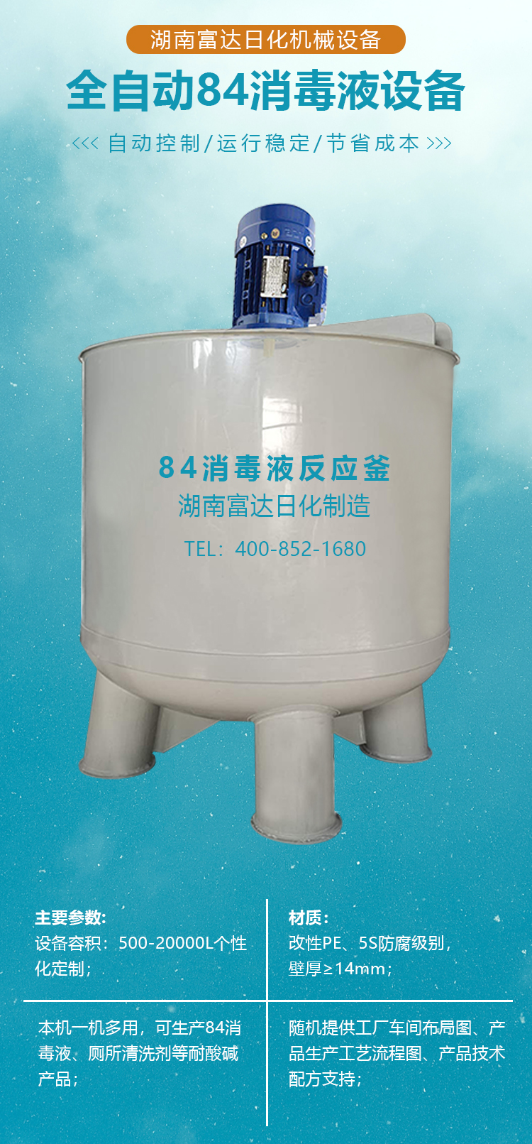 多項專利發(fā)明人王先軍 手機:150-7483-5702 手機:195-7316-028884消毒液,是一種應用廣泛,物美價廉的消毒藥水。因其發(fā)明于1984年,商品名稱就叫做“84消毒液”。洗衣行業(yè),簡稱為“84”。 “84”其主要成分是次氯酸鈉。次氯酸鈉與空氣和水分接觸,會產(chǎn)生次氯酸,而次氯酸具有很強的氧化性,可以殺滅多種病菌和細菌。 但是,次氯酸鈉是一種不穩(wěn)定的物質,不利于運輸與保存。于是,就利用其在強堿性的條件下相對穩(wěn)定的性質,把次氯酸鈉和強堿“混合”在一起,起到易于保存的目的。因此,“84”消毒液原液,PH值在13以上,是一種堿性非常強的液體。