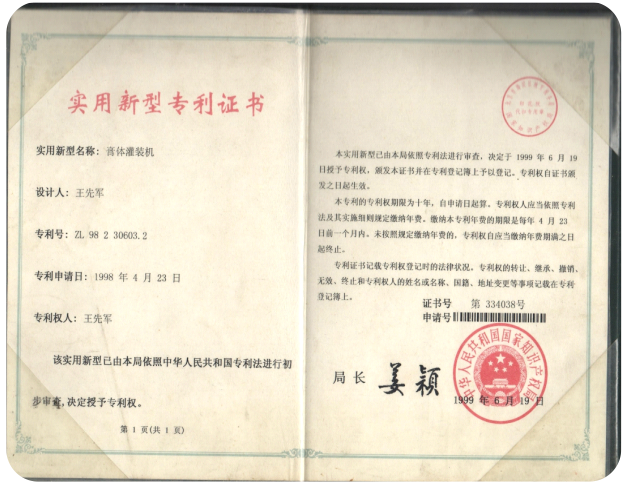 1998年4月曾獲膏體灌裝機(jī)國(guó)家專利 |