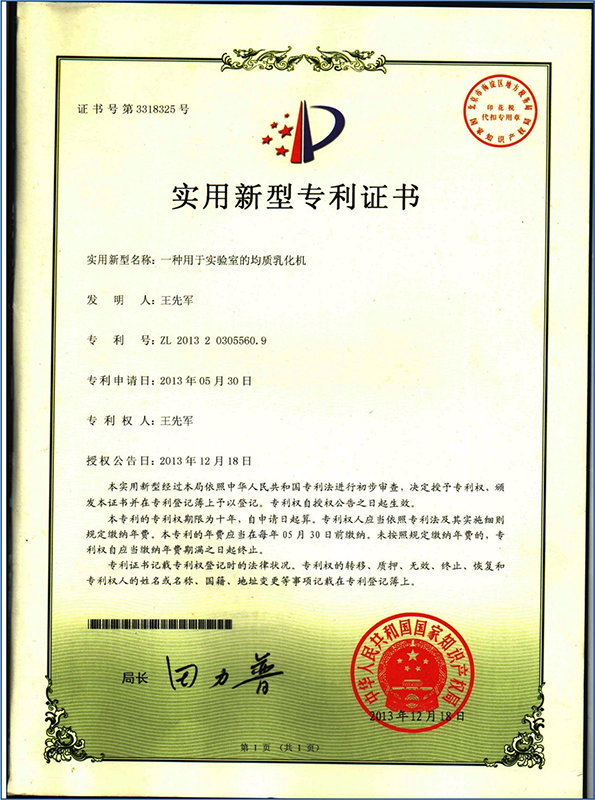 2013年05月曾獲得均質(zhì)乳化機(jī)國(guó)家專利 |