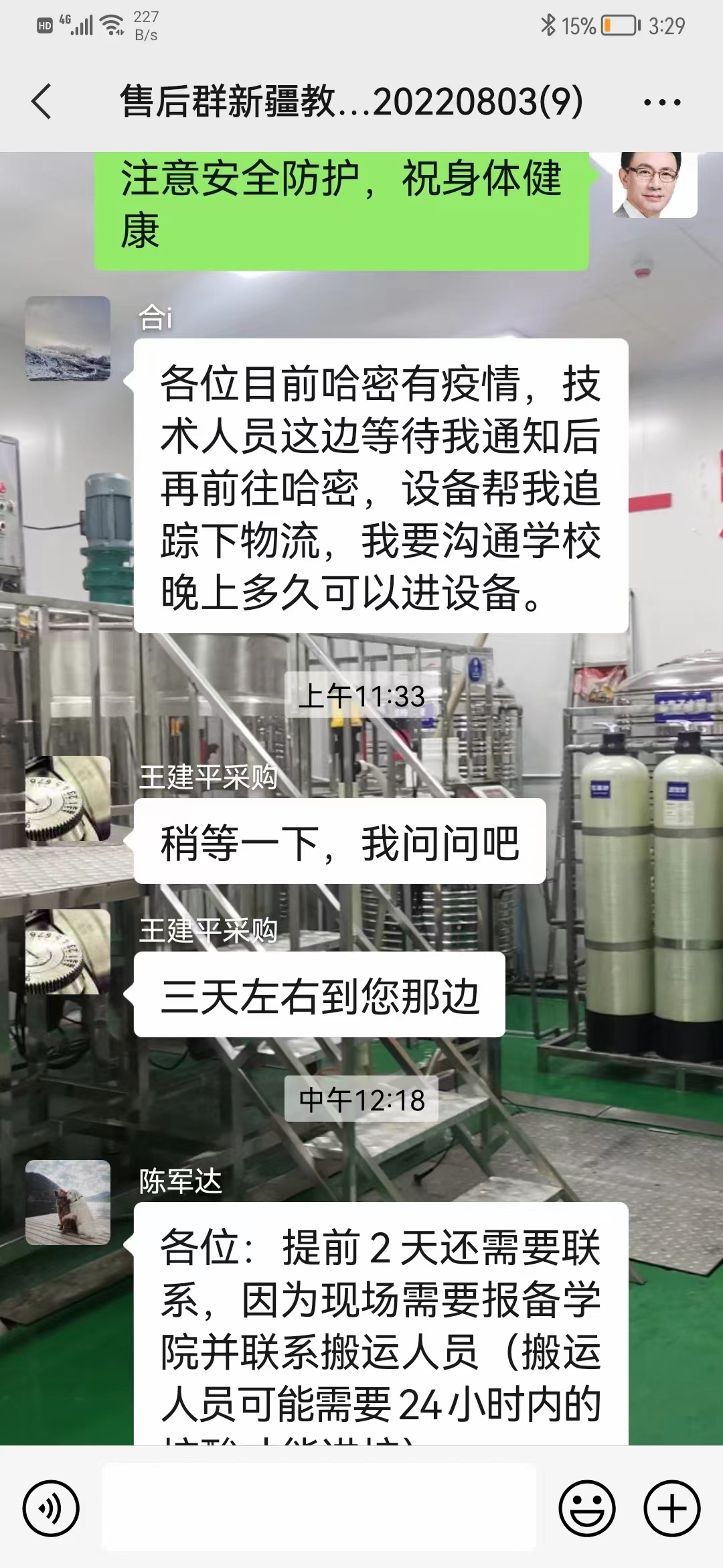 好事多磨,發(fā)往新疆大學(xué)系列日化設(shè)備因?yàn)橐咔闊o(wú)法正常安裝,期待疫情早日遠(yuǎn)去!