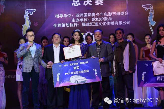 “歐妃女神選拔大賽”暨亞洲國際青少年電影節(jié)“未來影像造星計(jì)劃(女神季)”選拔活動(dòng)由歐妃護(hù)膚品主辦,亞洲國際青少年電影節(jié)組委會(huì)指導(dǎo),福建匯道文化傳播有限公司全稱策劃執(zhí)行。大賽以“簡單、自然、美“的標(biāo)準(zhǔn)以及”青春、自然、自信”的信念傳承與發(fā)揚(yáng)影像藝術(shù)的青春正能量,尋找”美麗、睿智“的歐妃女神,為中國的電影行業(yè)輸送最優(yōu)秀的影視新星。歐妃護(hù)膚品是福建綠植源生化科技有限公司主打的護(hù)膚品牌,一直秉承“低調(diào)、有效、自然、安全”的護(hù)膚理念,追求原料的精純、產(chǎn)品功效的極致、服務(wù)的熱情,旨在幫助所有愛美女性塑造內(nèi)外兼修的自信美、青春美和自然美。