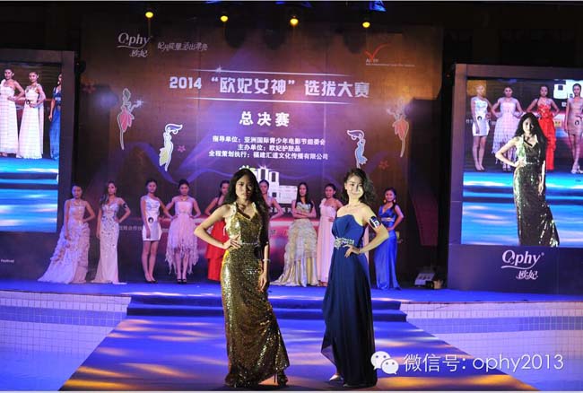 “2014歐妃女神選拔大賽”總決賽之夜在景色宜人的溫泉之鄉(xiāng)——福州貴安溫泉璀璨上演。柔和的晚風(fēng),清新的空氣,粼粼的池水,無處不體現(xiàn)著自然的氣息,是女神秀最美的布景。決賽選用T形舞臺(tái),搭建在貴安溫泉大型溫泉池上,水波蕩漾,霧氣氤氳,成為當(dāng)晚的一大亮點(diǎn)?,F(xiàn)場,來自福建各地的朋友們,熱情激昂,踴躍參與現(xiàn)場互動(dòng),比賽高潮迭起。不同于傳統(tǒng)的模特選秀,“歐妃女神選拔大賽”以優(yōu)秀影視明星為選拔標(biāo)準(zhǔn),大賽設(shè)置才藝表演和走秀展示兩個(gè)環(huán)節(jié)。在才藝表演環(huán)節(jié),女神們化身舞臺(tái)的精靈,各顯身手:古典舞、現(xiàn)代舞、歌曲演唱、樂器演奏、即興表演,形式多樣,內(nèi)容豐富。走秀展示環(huán)節(jié),女神們神采奕奕,珊珊踏步,時(shí)而輕柔,時(shí)而有力,盡顯自信和大方。