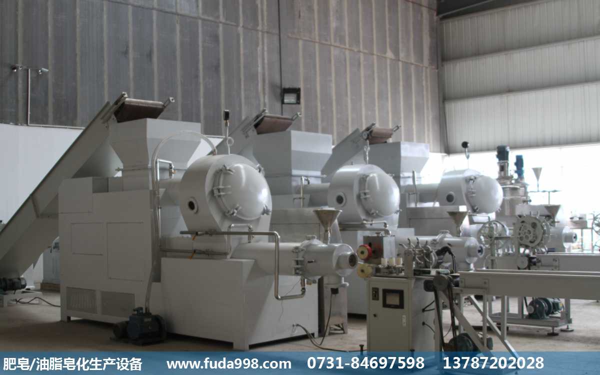 采用富達(dá)日化FZ-2000油脂皂化、肥皂成套生產(chǎn)設(shè)備,可以從獲取動物油脂,通過油脂的皂化,生產(chǎn)皂基,皂基干燥后,加上配料,壓條,切塊,打印,包裝,最后制作成肥皂。