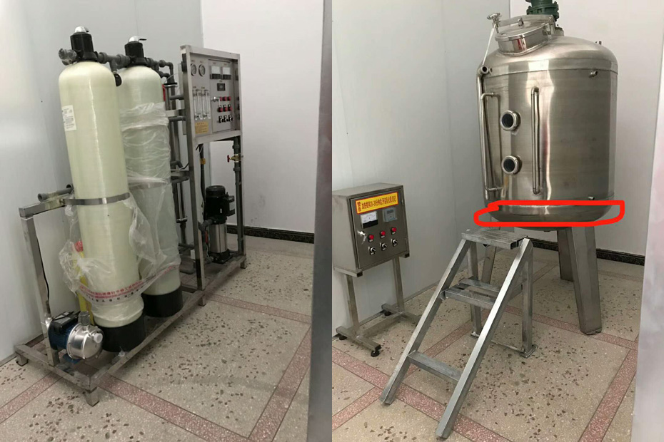 多項(xiàng)專(zhuān)利發(fā)明人王先軍 手機(jī):150-7483-5702 手機(jī):195-7316-0288便宜沒(méi)好貨,騙局無(wú)處不在,這是某用戶(hù)從其他設(shè)備銷(xiāo)售單位采購(gòu)的洗滌劑設(shè)備,首先,水處理就是一個(gè)做工粗造的簡(jiǎn)單過(guò)濾器,設(shè)備配置極其簡(jiǎn)單,水處理設(shè)備支架簡(jiǎn)陋,運(yùn)輸過(guò)程稍有震動(dòng)就會(huì)四分五裂,這類(lèi)水處理設(shè)備大都采用廢舊收購(gòu)公司回收處理的低價(jià)過(guò)濾膜,根本無(wú)法處理水中的重金屬,影響產(chǎn)品去污力,也無(wú)法清除水中的大腸桿菌等細(xì)菌導(dǎo)致產(chǎn)品發(fā)臭混濁變質(zhì),如圖所示的攪拌機(jī)屬于單層,僅為底部區(qū)域加熱,即使加熱10小時(shí),溫度也滿(mǎn)足不了低溫下洗潔精、洗衣液原料溶解的需要,該加熱裝置形同虛設(shè),其實(shí),就是一個(gè)單層普通攪拌機(jī)。