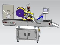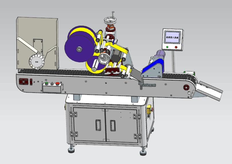 3, 產(chǎn)品在輸送帶的帶動下,自動向右側(cè)貼標機構運行;