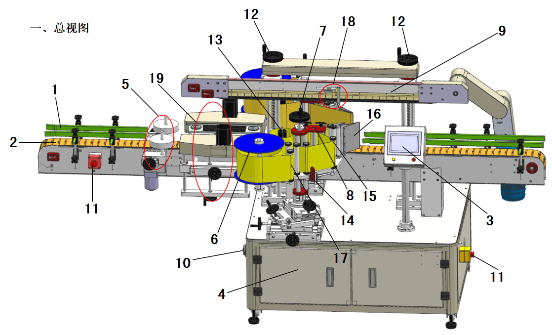 9、壓頂機構:用于壓緊瓶子,讓瓶子保持垂直從輸送帶過來保證貼標精度。