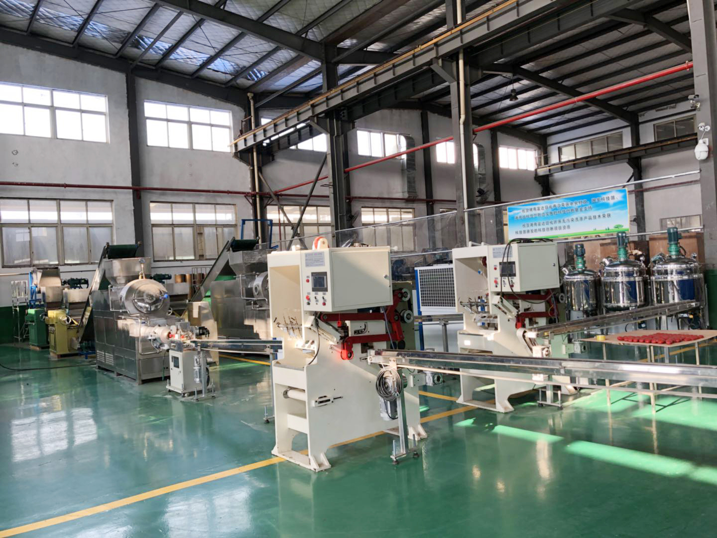 This set of production line is from oil melting, oil saponification, salt washing, alkali washing, bleaching, finishing, vacuum granulation, one-time grinding, continuous vacuum double barrel double strip, cutting and forming (the most advanced process at home and abroad). It has the characteristics of less land occupation, low consumption, less employment and stable product quality, and can produce a variety of soap products (high, medium and low-grade products) with fatty acid content ranging from 38% to 70%.