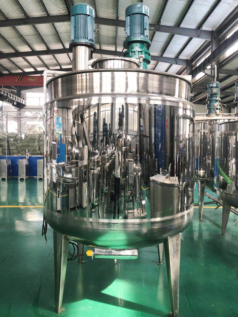 反應(yīng)釜又稱為攪拌罐,具有攪拌、加熱、乳化、混合等多功能的反應(yīng)容器,可以用來生產(chǎn)各種液體產(chǎn)品,例如:洗衣液、洗手液、洗潔精、防凍液、玻璃水、消毒液、洗發(fā)水、沐浴露、花露水等等。通過攪拌器的高速轉(zhuǎn)動,產(chǎn)生離心力,物料在離心力的作用下充分混合、均質(zhì)進而得到半成品。